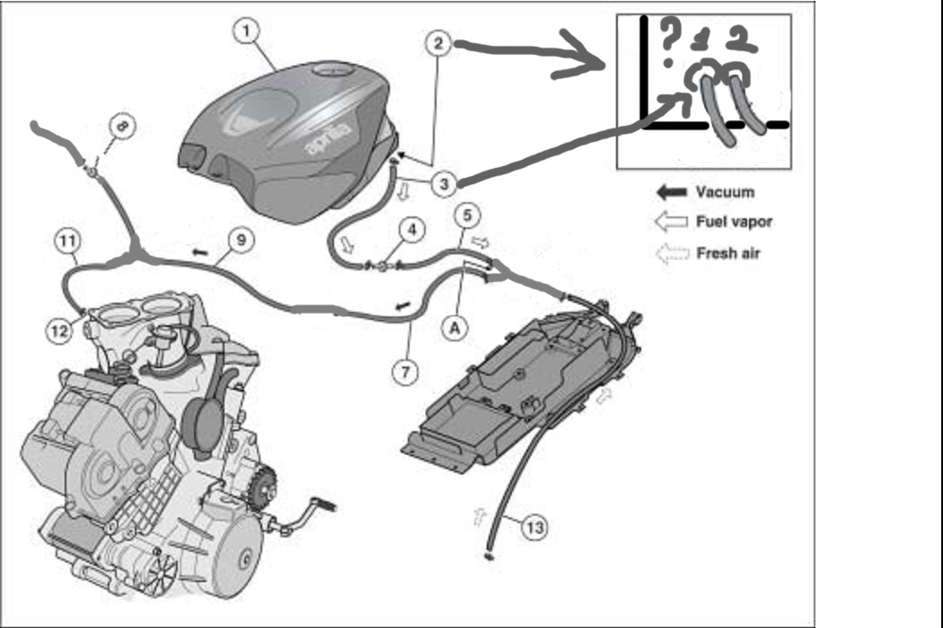 Значит рестриктор у тебя просто выкинут.. Я бы наверно заглушил трубку 9, а трубку вентиляции бака просто пустил бы под пузо вместе с трубкой перелива.