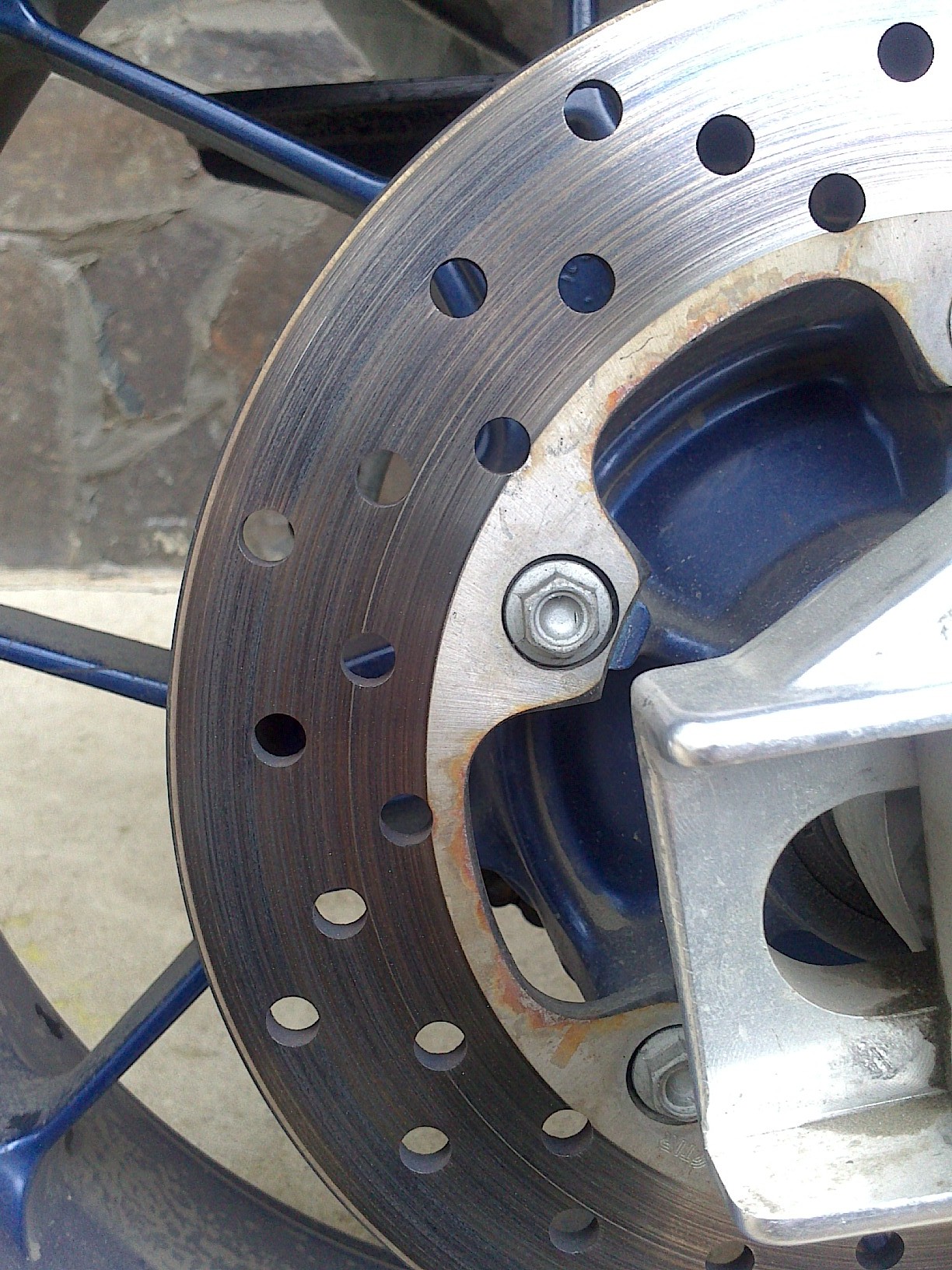 На Фалько цилиндр перенесен в стоке, менял двигатель от Туоно - старое крепление оставил. А по поводу синего диска - это нормально, главное, чтобы вода не попала на нагретый диск - или поведет и он станет кривой, начнет бить или пойдут трещины в районе дырок перфорации - у меня так было на р6. Да и задний диск в случае чего можно легко изготовить, вырезав на плазме из ст45, какой хочешь формы, а вот с передними-то потруднее - они плавающие, т.е. надо будет с заклепками мудрить.