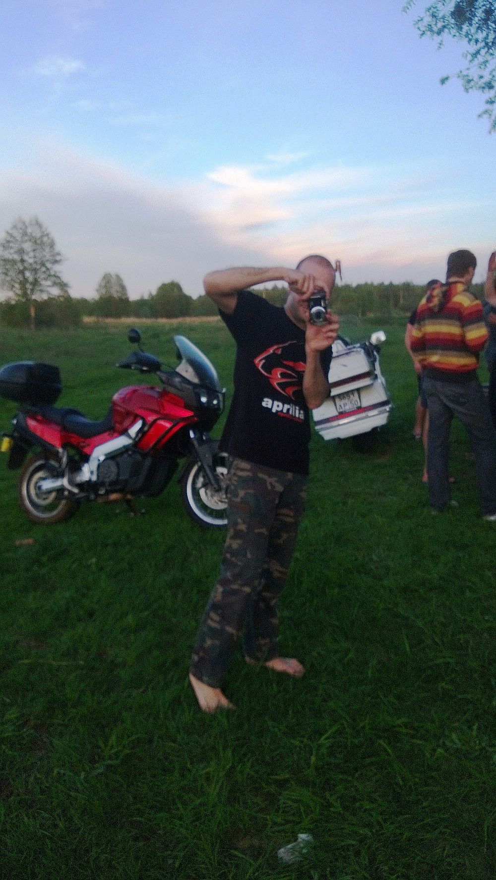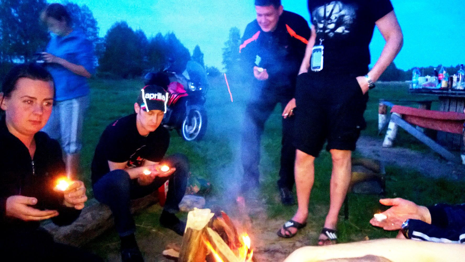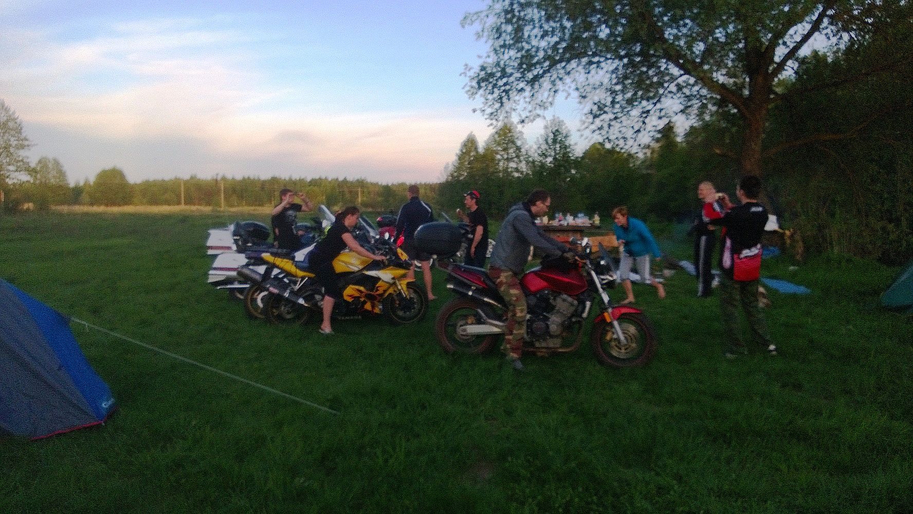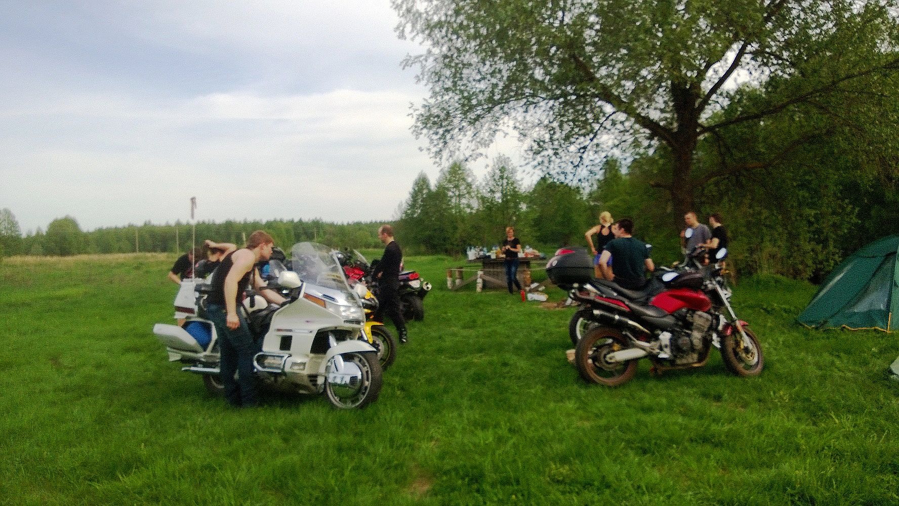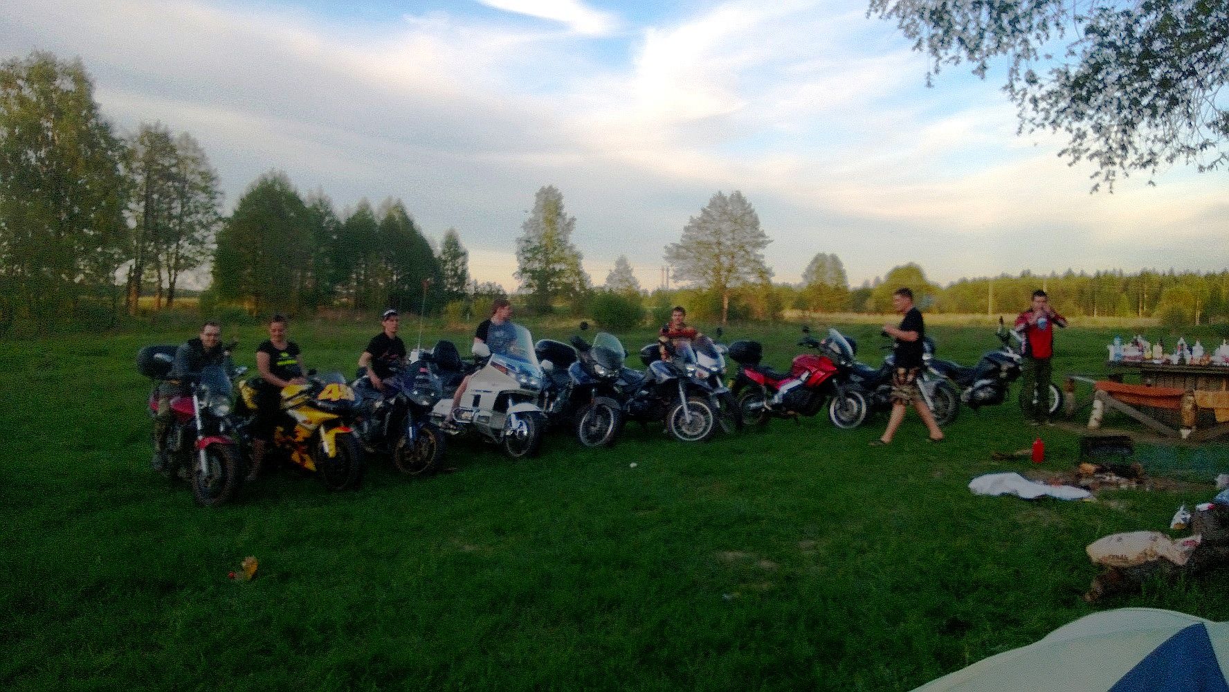 Я даже не помню, когда последний раз у меня столь насыщенно событиями, приятным общением, великолепной природой... ну и комарами проходили выходные. Приехав на место сбора в субботу и вернувшись домой в воскресенье, я поверить не мог, что прошло всего 1,5 дня... было стойкое ощущение, что прошел маленький отпуск! Всем спасибо за совместно проведенный отдых!!! Отдельное спасибо нашим с супругой близким боевым товарищам EVGENiYa, что не разрушив колонну с нами, оказали посильную помощь в "пикнике на обочине" ремонтируя нашу технику на которой мы везли магнитофон Ибо финальным аккордом завершения дороги домой стал прокол заднего колеса, с чудесным, но бодрящим кровь адреналинчиком в виде останова практически "неуправляемой" голды... ну и последующем поиском насоса, ремкомплекта и непосредственного процесса ремонта лежа в полуметре головой от проносящихся рядом грузовиков. Поднять голду со спущенным колесом на центральную подножку могут только двое мужиков и двое их очаровательных спутниц... исключение хоть одного участника из этой процедуры... и все..... мужики бы не справились ))) Фотки от нас чуть позже....