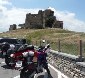 Все мотопутешественники когда-нибудь, рано или поздно, посещают Грузию. Не остались в стороне от этого движения и мы. Зима закончилась, отцвела весна, наступил долгожданный июнь с Днём России, сулящий свободную неделю, которую решено потратить на мотопробег по стране, к названию которой есть множество эпитетов в превосходной степени. Надо отметить, что в этот раз пилоты те же, Юрий и Вадим, а вот состав мототехники изменился: в дорогу отправляются недавно приобретенный мною Aprilia Pegaso 650 и уже проверенный Крымом Honda Transalp 650. Оба мотоцикла сделаны в Италии, но на разных заводах и с разницей чуть более десяти лет, Пегас старше, он скорее кубатурный мотард, чем эндуро-турист, Трансальп типичный представитель своего класса, несколько вальяжный и более уютный для ездока. Мотоциклы сходны по объему двигателей, ходам подвесок и количеству карбюраторов, в остальном они конструктивно отличаются и по характерам тоже. Первый длительный вояж для Пегаса, в котором я проверю ездовые качества мотоцикла со мной и грузом порядка 35 кг, Пегас обут в Metzeler Tourance, в стоковом оснащении (на считая защитных дуг и багажника), также испытаю на себе новый туринговый Breaker от LS2. День первый: мотоциклы собраны, кофры и сумки навьючены, выспаться, как водится, не удалось, но нам ли горевать по этому поводу, стартуем от Стелы, заливаюсь бензином под завязку в Извещательном. Баки на мотоциклах разные, в Пегасе рабочий объем порядка 14 литров, так что череду остановок на заправку и отдых будет диктовать он. Погода шепчет, движемся в сторону Владикавказа, среднюю держим порядка 100-110 км/ч. Первая заправка на любимом Лукойле перед Мин-Водами, затем остановка за Анзореем в Кабарде. На пересечении границы Кабарды и Осетии регистрируемся на блок-посту вместе со всеми попутчиками; рамка и сканер для моего рюкзака, который вызывает живой интерес у сотрудника поста, перечислив вслух «железо» в моей поклаже, страж границы очень доволен собой. После полудня, сделав очередную остановку перед Верхним Ларсом на комплексе «Стандарт», заправляемся впредь российским бензином. Впереди граница. Подъезжаем к самому переходу по разделительной, минуя колонну из коробок и коробочек, вот ещё одна приятная особенность мотоцикла, пограничники направляют нас на переход. Покинули Россию примерно через час, немного нейтральной территории в виде грейдера и слабоосвещенных туннелей и вот нас встречает грузинская сторона. Отмечаю для себя явное отличие погранпереходов, тут сравнение не в пользу российского, увы. Грузинские пограничники расторопны и работают гораздо быстрее, обязательно предупредят о необходимости купить полис. Вот он, заветный первый иностранный штамп в моём загранпаспорте! Кстати, я должен непременно проставиться по этому поводу - сообщает мне мой друг; на мажорной ноте начинаем движение по территории Грузии, эмоции подавляют усталость, впереди Степанцминда и Гергетис Цминда Самеба. Смотровая возле перевала в этот раз была закрыта на ремонт, скоро там будет стоянка и удобный подъезд по брусчатке. По пути постоянно встречаем мотоциклистов, едут как туда так и обратно, много двухколесных иностранцев, Вадим преодолевает языковой барьер, я фотографирую. Первую ночевку запланировали сделать в гест-хаусе в Степанцминде или рядом. К пяти часам по местному времени подкатили к местной