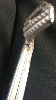 Мне варили эти лапки на разные мотоциклы, и могу сказать, что у дайтоны самое тонкое сечение в этом месте из всех. Слишком нежная лапка эта... Странно, что после падения ее не оторвало, а загнуло... Судя по следам на площадке, куда нога нажимает, мотоцикл еще и ехал на боку на ней...