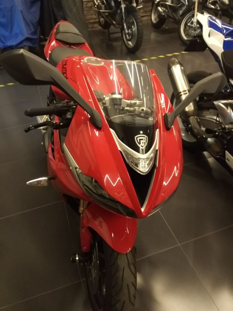Разные неприятные события со мной происходили в этом году с самого его начала, только к концу августа все боль-менее устаканилось, так что решил я вернуться к своему привычному образу жизни и времяпровождению. Решил опять купить себе мотоцикл. Литр мне не очень нужен, да и дорого слишком. Хотел брать Спид Трипл 1050 в Москве, но чето душа у меня не лежит к зедоподобным мотикам, да и не для продубасов они всё-таки: руль, посадка, расположение органов управления - все это не то, что мне надо. И еще очень лень куда-то ехать за мотиком... ОЧЕНЬ. ЛЕНЬ. Прошли давным-давно те времена, когда я готов был на подобные подвиги. Дайтона у меня уже была и зарекомендовала себя с самой лучшей стороны (за исключением возрастных болячек, подробнее здесь: http://www.aprilia-club.ru/forum/27-3025-1 ), поэтому особо не колебался при выборе следующего пациента - тоже Дайтона, тоже красная, но третьего поколения, уже со всеми устраненными (надеюсь...) производителем болячками, с пробегом 7676 кэмэ, 2013 года выпуска. Куплен мной в салоне пару часов назад. Мапед дилерский, эксплуатация с 2015 года, бывший владелец все больше по командировкам, поэтому такой смехотворный пробег. Цена тоже весьма вменяемая. Вот такой аппарат: