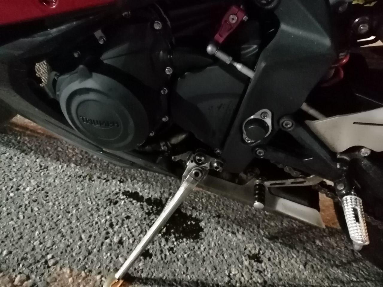Опять откуда-то сверху двигаетля начало сочиться масло... Пришел с утра в гараж - под мотиком маленькая лужа масла, 2х7 см примерно. Обсмотрел весь его - ничего не видать. Заехал в ремзону, где мощные фонарики и свет хороший - нашли эти потеки. Некритично, но неприятно. Скорее всего, это тот самый китайский сальник ведущей звезды не выдержал.