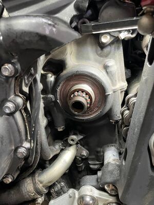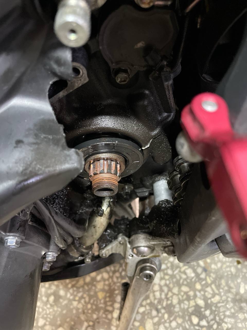 Нужен тест-драйв после замены сальника. Потому что вполне может оказаться так, что буксовало заднее колесо из-за постоянного попадания на него масла. Сначала в небольших кол-вах, потом больше, потом еще больше... Если в прошлом году под конец сезона оно вбок влево куда-то летело и оставляло следы на нержавеющей части глушителя, то в этот раз оно стекало по левой стенке блока двигателя и далее по поддону картера попадало четко посередине заднего колеса. Эту утечку и видно особо не было, запахов тоже никаких не было до последнего момента. Пока там капля-две в минуту капали, это было пох. Как только сильнее начало капать, то колесо стало пробуксовывать, потом все сильнее и сильнее, пока не случился вчерашний армагеддон. При наклонах мотика, соотв., масло тоже летело в сторону наклона - вот и пробуксовка в поворотах. Там много-то не надо, чтоб она началась...