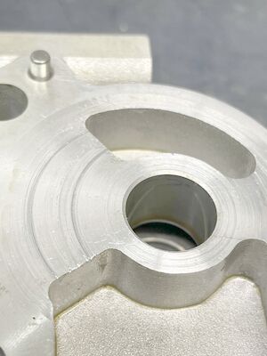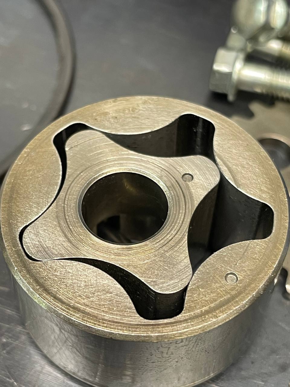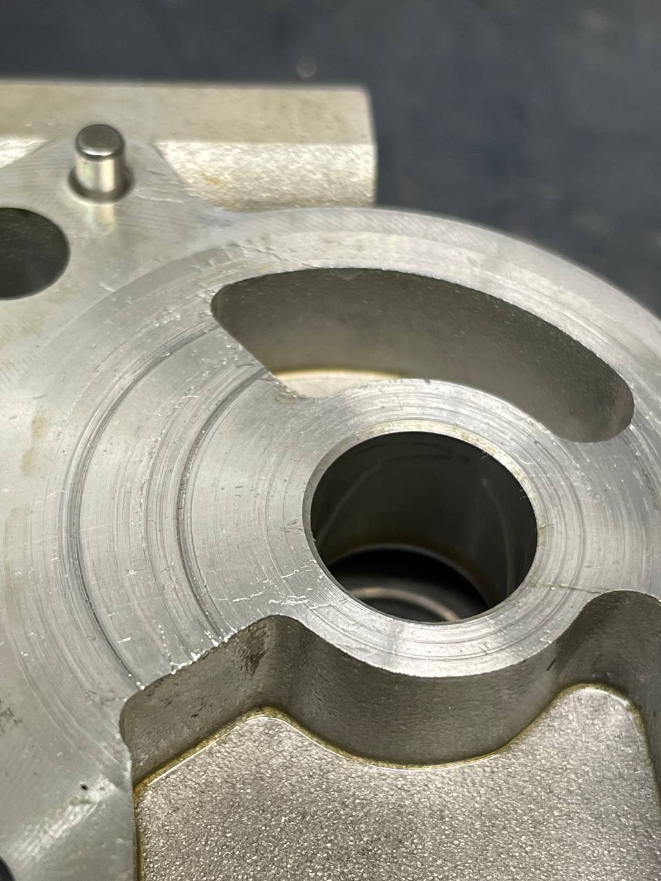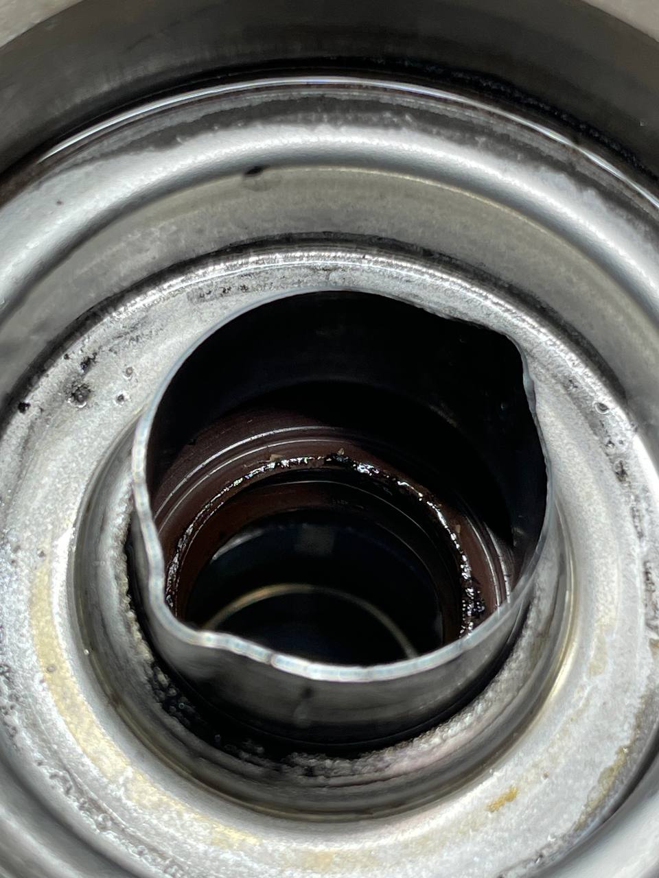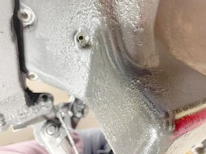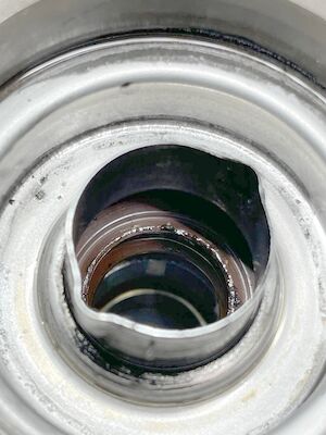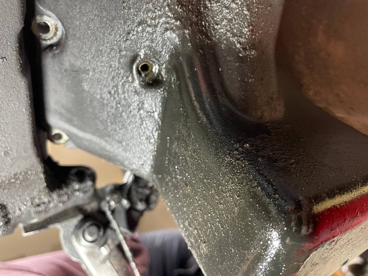Собственно, то самое контрольное отверстие. Разобрали пол-мотика в итоге, слили антифриз - в нем масло:
