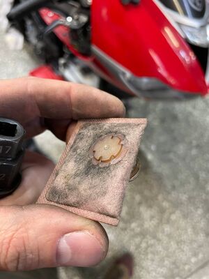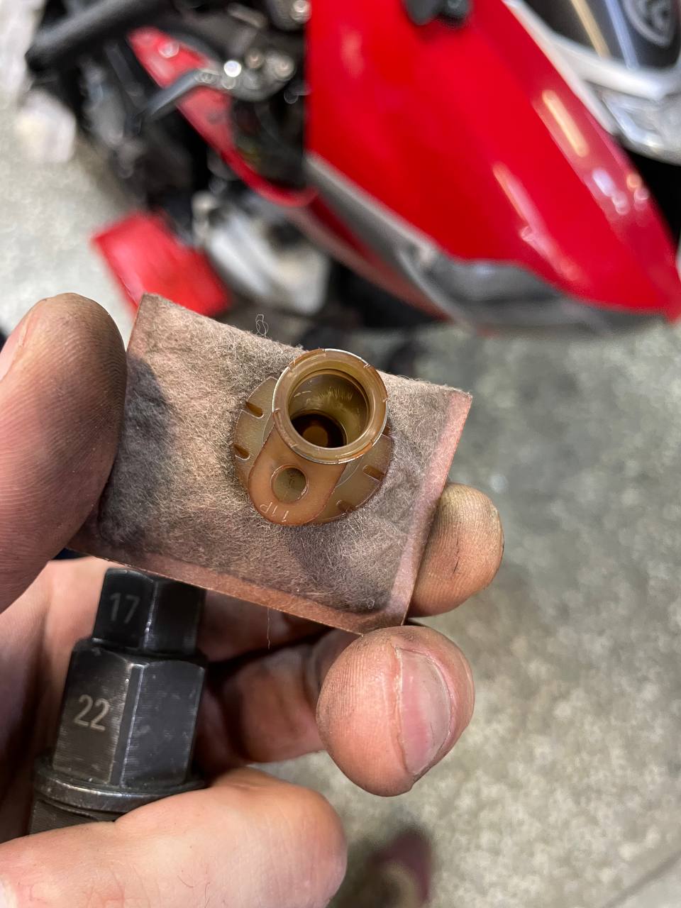 На свечах нагар светло-коричневый - смесь беднит. Никаких следов масла нет ни на свечах, ни на тарелках выпускных клапанов - это очень хорошо. Значит всё то масло, что уходило из поддона за последние несколько недель, пошло прямиком в систему охлаждения. Ну, то есть это тоже плохо, конечно же, но уж всяко лучше, чем конченный двигатель. Так что еще подубашу на нем и в следующем сезоне.