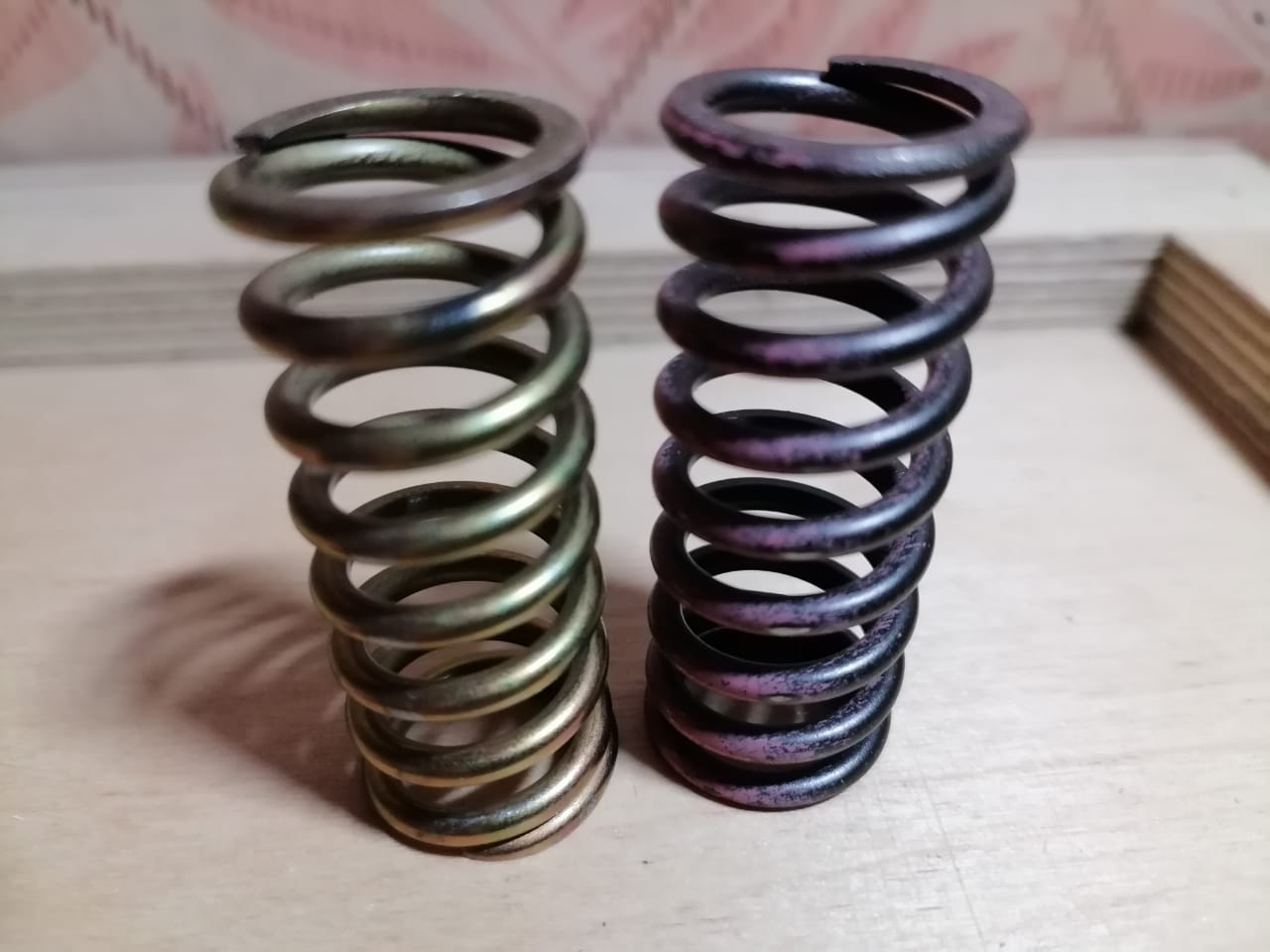 Замерил высоту новых стоковых пружин сцепления - ровно 50 мм. Старые стоковые 48 мм, пружины от комплекта Barnett тоже 48 мм, по жесткости стоковая даже чуть пожестче... Странно - на априлье и буелле барнеттовские пружины были сильно жестче и толще. У обоих пружин диаметр проволоки 2,5 мм.