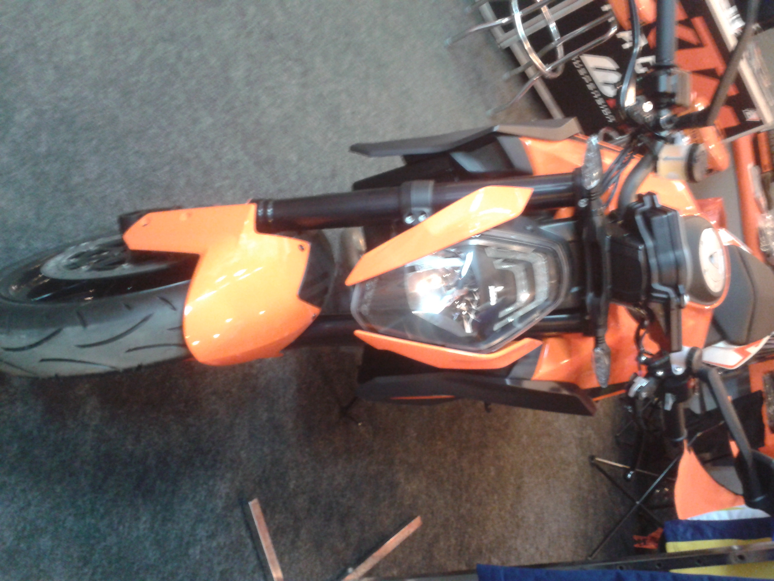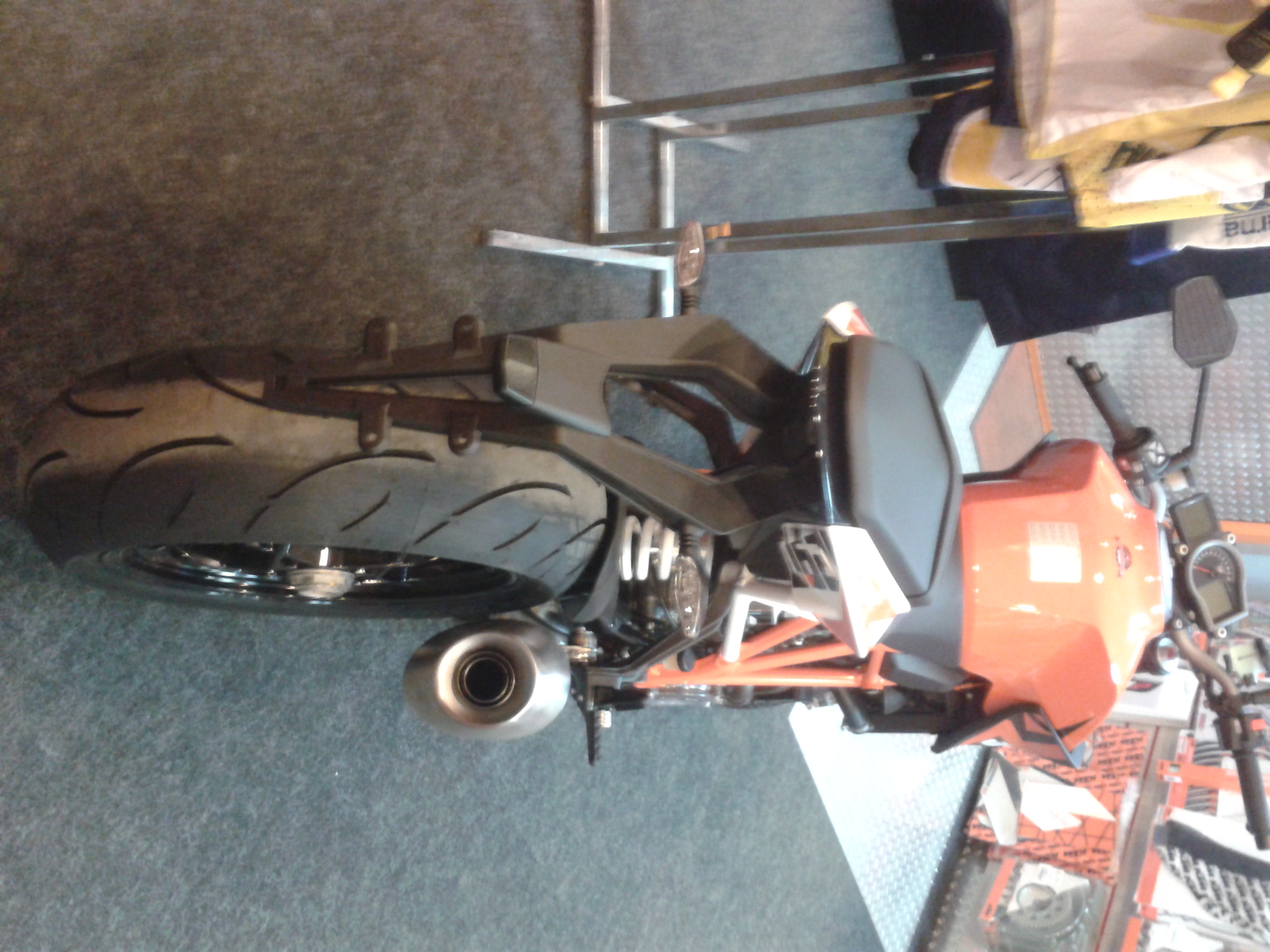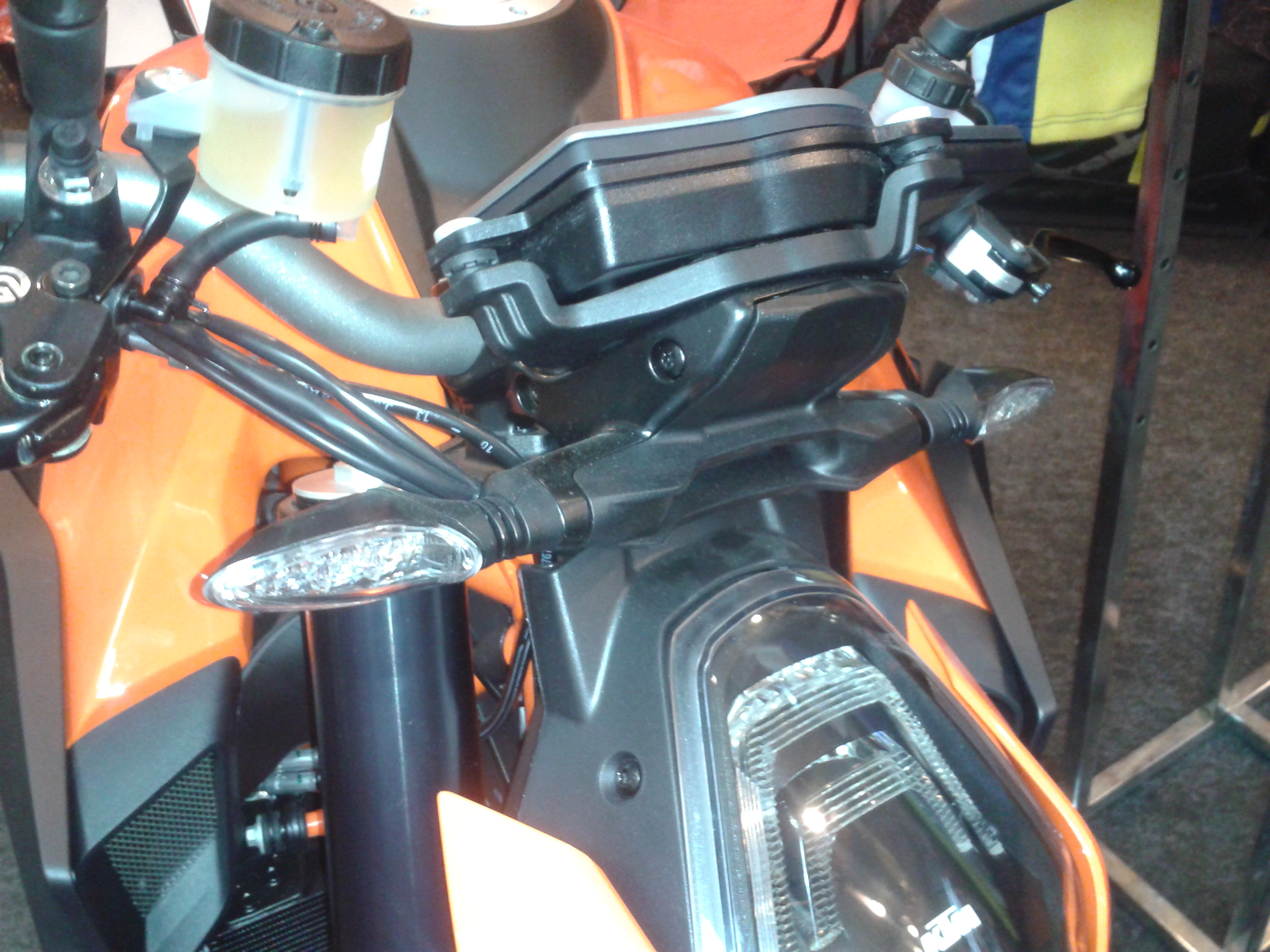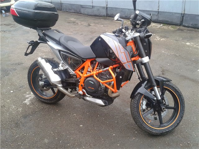 Добрался до дюка:-), спецом заезжал в пятницу, но сказали, что будет после презентации... а тут бац - поехал куртку выбирать и даже в двух магазах нашел:-) Повезло посидеть на рыжем дюке Оч понравилась посадка, все удобно и на месте...немного пошире моей дорсы 750 по ощущениям, по весу - разницы особо не заметил, слегка напряг убогий пластик некоторых элементов приборки и боковин на баке, поворотники от индийского дюка 200:-). Оптика со светодиодоми сверху, но ни линзы, ни разнесенного света нет, и запихнуть ксенон очень трудно, т.к. места нет за фарой вообще... Приборку спереди могли чем-нибудь прикрыть... Демпфер простой, без регулировок... Дорожный просвет около 10 см, если с водителем... Дуги особо не поставить нормально, только если от адвенчера - но они сильно торчат, слайдеры если только... Бак 18 л, при его аппетите наверное около 200 км и проедешь:-) Говорят, при предоплате цена была около 700 т.р... Вот за такие деньги можно и подумать:-). Говорят с адвечерами новыми засада, никто за такие цены брать не хочет... Перед новым годом скидки были космические... Мот в итоге больше понравился, чем нет... Будем ждать тестдрайва и адекватной цены:-)