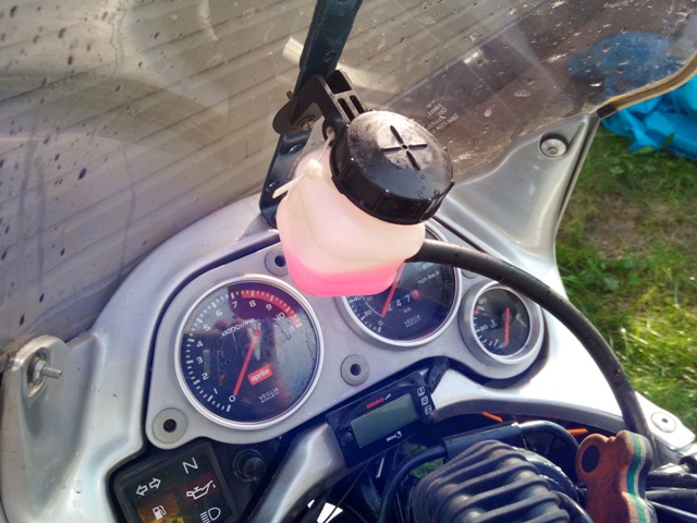 В общем самодельная прокладка стала пропускать газы в СО... Но я ее не протягивал ! Пяти тысяч не отходила. Почувствовал, что начал греться, стал полным компенсационный бачек и судорожно решил протянуть головку. Однако я ее изначально перетягивал до 70 Нм по-моему и как мне показалось при протяжке потянулись две шпильки (или они так ослабли). В общем пока докатываю сезон в таком виде как на фото. Интересно наблюдать как играет уровень антифриза в самодельном бачке. С крышки радиатора снял нижнюю подвижную шайбу с уплотнительной резинкой чтобы антифриз мог самотеком уходить в радиатор. В принципе до дачи и обратно (160 км) еду нормально, не более 140 км/ч. Как понял главное двигаться и лучше на ровном газу, правда разок на обгоне с переходом на 4-ю давануло аж струйкой в дырочку пробки от тормозного бачка ВАЗ-2121 (резинку внутри я убрал). Зимой буду опять снимать мотор и поменяю прокладку ГБЦ (родная лежит дома с Аллегро), протяну моментом 48 Нм и через тысячу как по мануалу еще раз протяну головку.