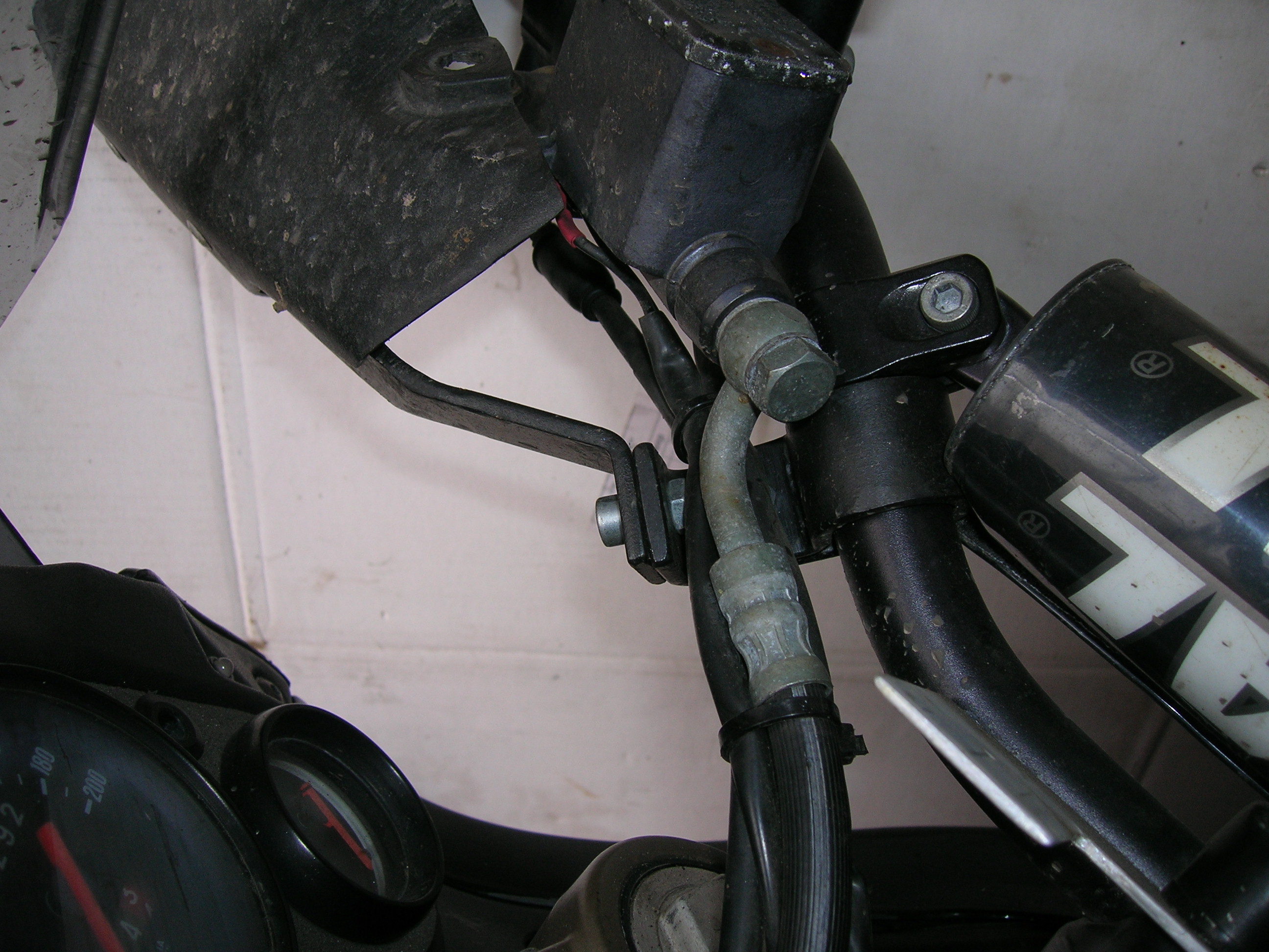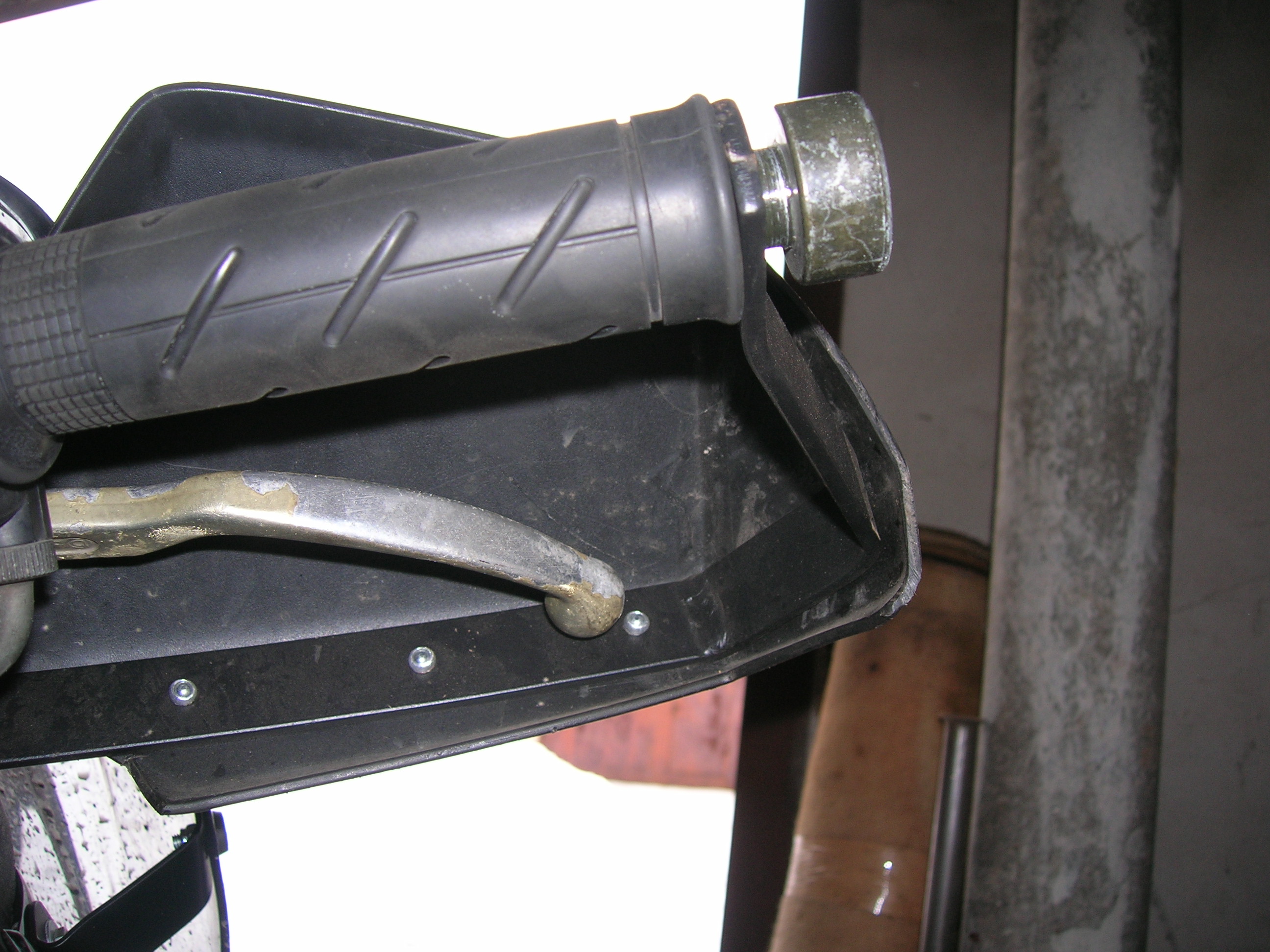 Да,кстати. Сделал защиту пультов и ручек. Согнул стальную полосу, приклепал обрезанные чашки от пластиковой защиты (которая давно валялась) от другого мотыка и экспромт готов. Испытания прошли успешно =).
