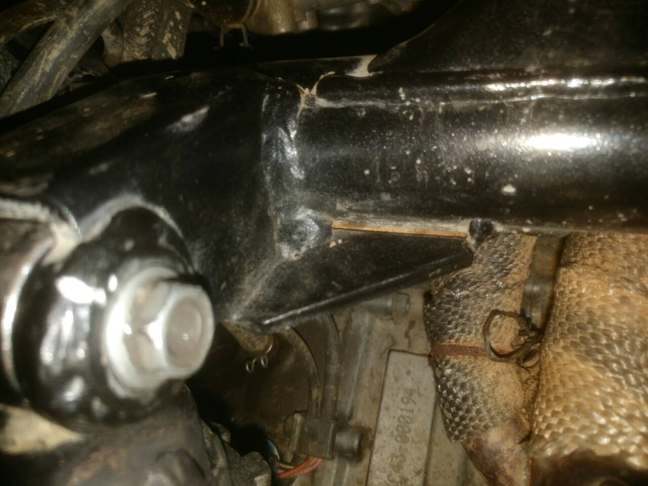 Смотри подрамник и маятник. Маятник у меня гнулся после ДТП, да и подрамник тоже. А на раме только уши крепежные согнулись, и то не сильно. - Kawasaki Versys 650 2007 ( naked ) - Aprilia Shiver 2008