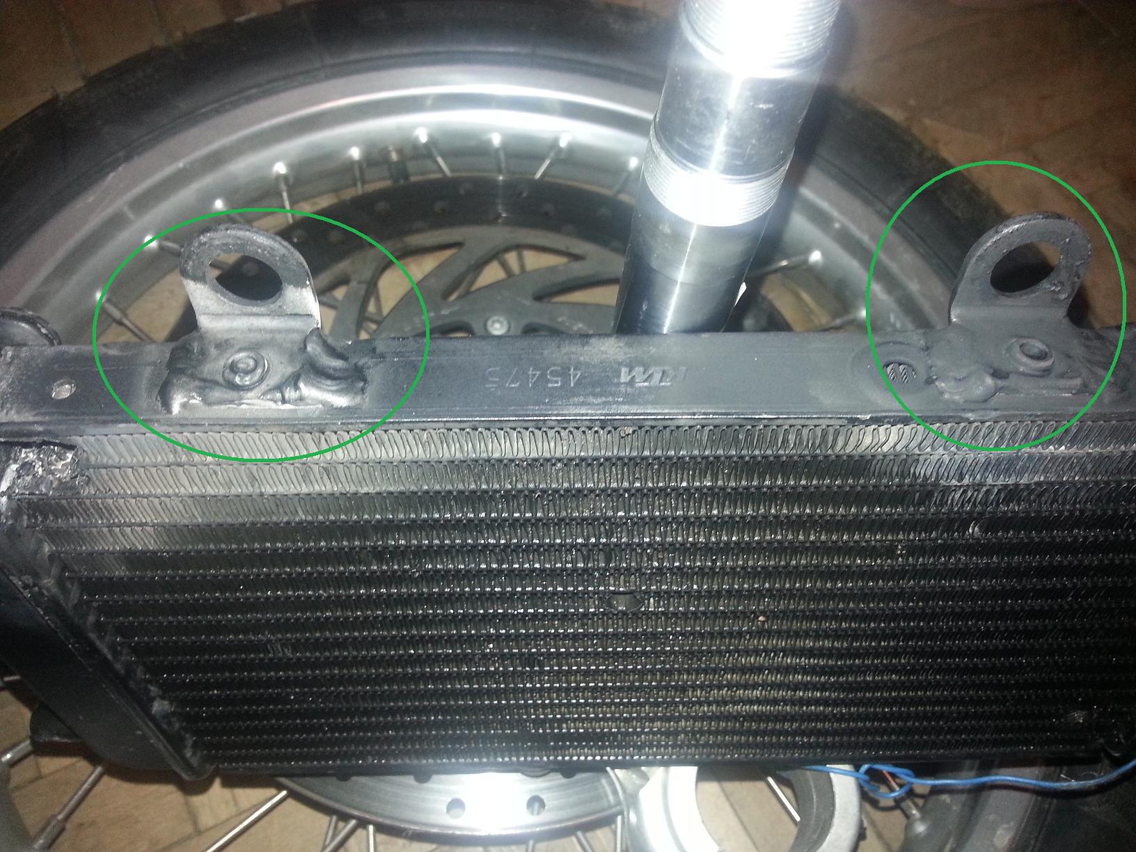http://radiatora.net/ воспользовался услугами данной организации. Необходимо было восстановить ограничитель поворота руля на траверсе, заварить радиатор, приварить крепежные уши на место и восстановить геометрию радиатора. Красным помечены повреждения, зеленым - работа. Ламель оказалась повреждена почти по всей длине, по этому они ее заглушили с двух сторон. Уши приварили. Выправили геометрию. Восстановление упора 1200р, ремонт радиатора 1800р. Вчера под конец рабочего дня привез, сегодня в 13 часов позвонили и сказали, что уже сделали... Готовы браться за все, если оборудование позволяет... На сайте видно, что варят всякие подножки и пр. муть, что у нес так часто ломается.