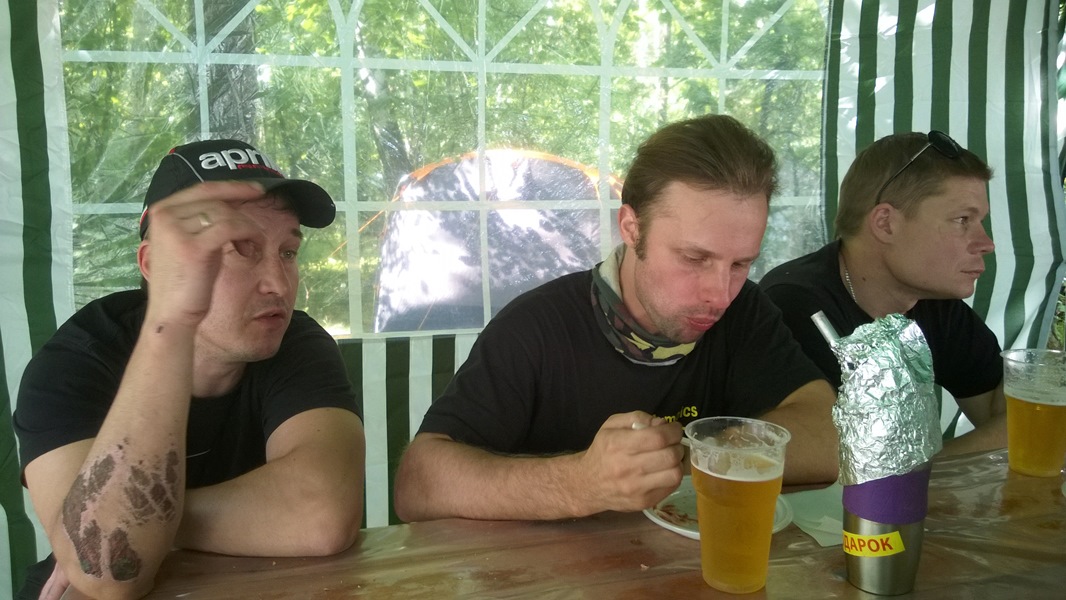 Как всегда для гостей будет работать полевая кухня и полевая баня! Накрываем стол в субботу и угощаем всех антипохмельной ухой в воскресенье,будет и кружка чая с кругляшом масла на хлебе!) Будут работать торговые точки с едой и напитками.Слёт полностью полевой,живём в палатках в тени леса!